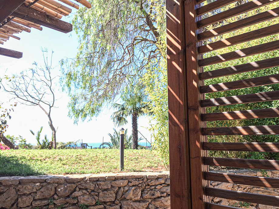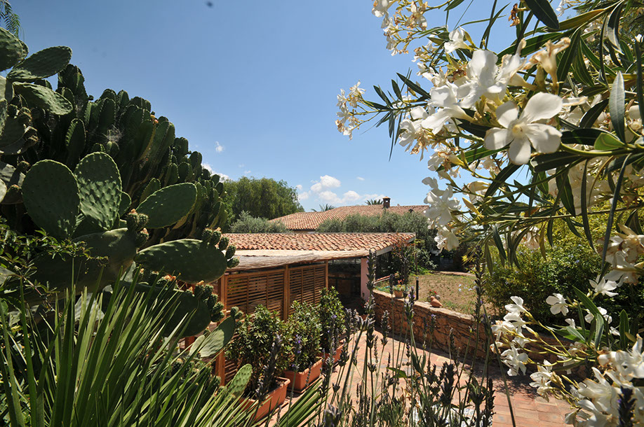 E poi le agavi, le piante grasse, gli ulivi e gli alberi da frutto, gli aromi e i gerani. E per panorama, l'azzurro del mare.